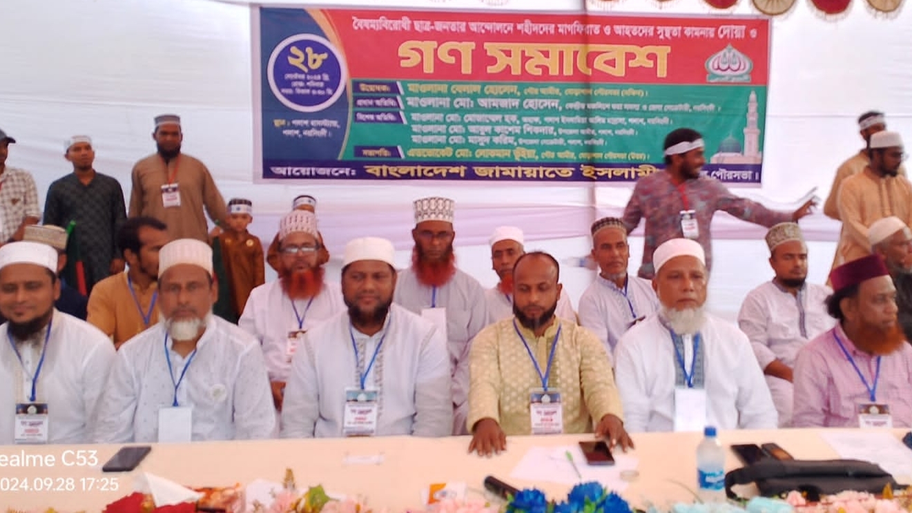 নিজস্ব প্রতিবেদক : নরসিংদীর পলাশে বৈষম্যবিরোধী ছাত্র-জনতার আন্দোলনে শহীদদের মাগফিরাত ও আহতদের সুস্থ্যতা কামনায় দোয়া মাহফিল ও গণসমাবেশ অনুষ্ঠিত হয়েছে। দীর্ঘ ১৫ বছর পর শনিবার (২৮ সেপ্টেম্বর) বিকালে বাংলাদেশ জামায়াতে ইসলামী পলাশের ঘোড়াশাল পৌরসভা শাখার আয়োজনে পলাশ বাসস্ট্যান্ডে এ গণসমাবেশ অনুষ্ঠিত হয়।