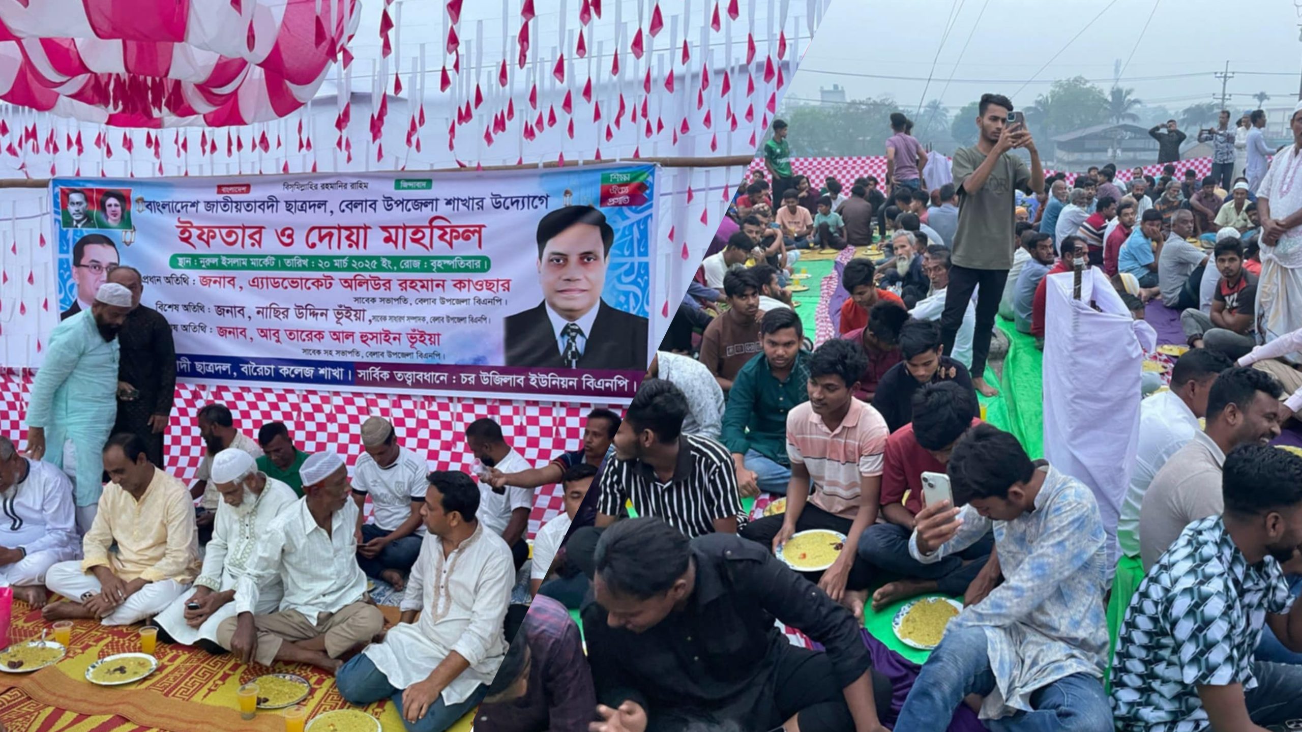 আলমগীর পাঠান, নিজস্ব প্রতিবেদক : বিএনপি চেয়ারপারসন বেগম খালেদা জিয়ার রোগমুক্তি ও সুস্থতা কামনায় বাংলাদেশ জাতীয়তাবাদী ছাত্রদল বেলাব উপজেলা শাখার উদ্যোগে দোয়া ও ইফতার ও মাহফিল অনুষ্ঠিত হয়েছে। বৃহস্পতিবার (২০ মার্চ) বিকালে উপজেলার বারৈচা বাসস্ট্যান্ডে নুরুল ইসলাম মার্কেটে বাংলাদেশ জাতীয়তাবাদী ছাত্রদল বেলাব উপজেলা শাখার উদ্যোগে ও বারৈচা অর্নাস কলেজ শাখার আয়োজনে এ ইফতার ও দোয়া মাহফিল অনুষ্ঠিত হয়।