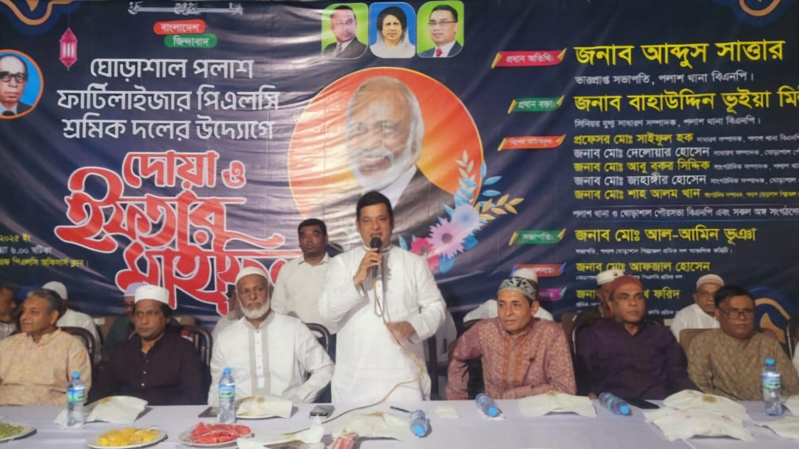 নিজস্ব প্রতিবেদক : ঘোড়াশাল-পলাশ ফার্টিলাইজার পিএলসি শ্রমিক দলের উদ্যোগে দোয়া ও ইফতার মাহফিল অনুষ্ঠিত হয়েছে। বুধবার (২৬ মার্চ) বিকালে ঘোড়াশাল-পলাশ ফার্টিলাইজার অফিসার্স ক্লাবে পলাশ ঘোড়াশাল শিল্পাঞ্চল আঞ্চলিক কমিটির সভাপতি মোঃ আল আমীন ভুইয়ার সভাপতিত্বে এ দোয়া ও ইফতার মাহফিল অনুষ্ঠিত হয়।