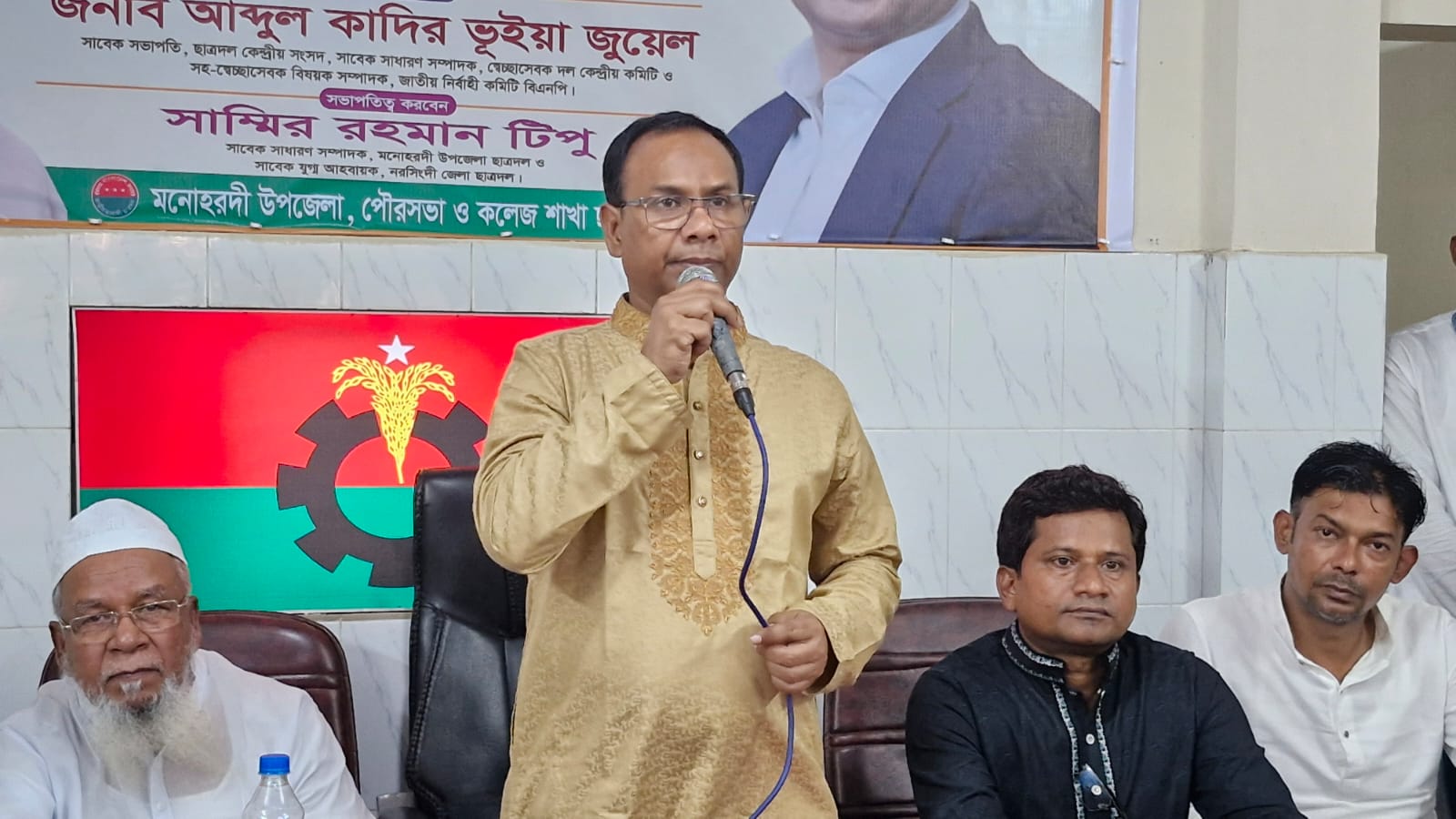 আজ শুক্রবার দুপুরে নরসিংদীর মনোহরদী উপজেলা বিএনপির কার্য্যালয়ে উপজেলা ছাত্রদলের উদ্যোগে বিএনপির ভারপ্রাপ্ত চেয়ারম্যান তারেক রহমান এর পক্ষে এইচএসসি পরীক্ষার্থীদের মাঝে শিক্ষা উপকরণ প্রদান ও দোয়া অনুষ্ঠানে প্রধান অতিথির বক্তব্যে তিনি এ কথা বলেন।