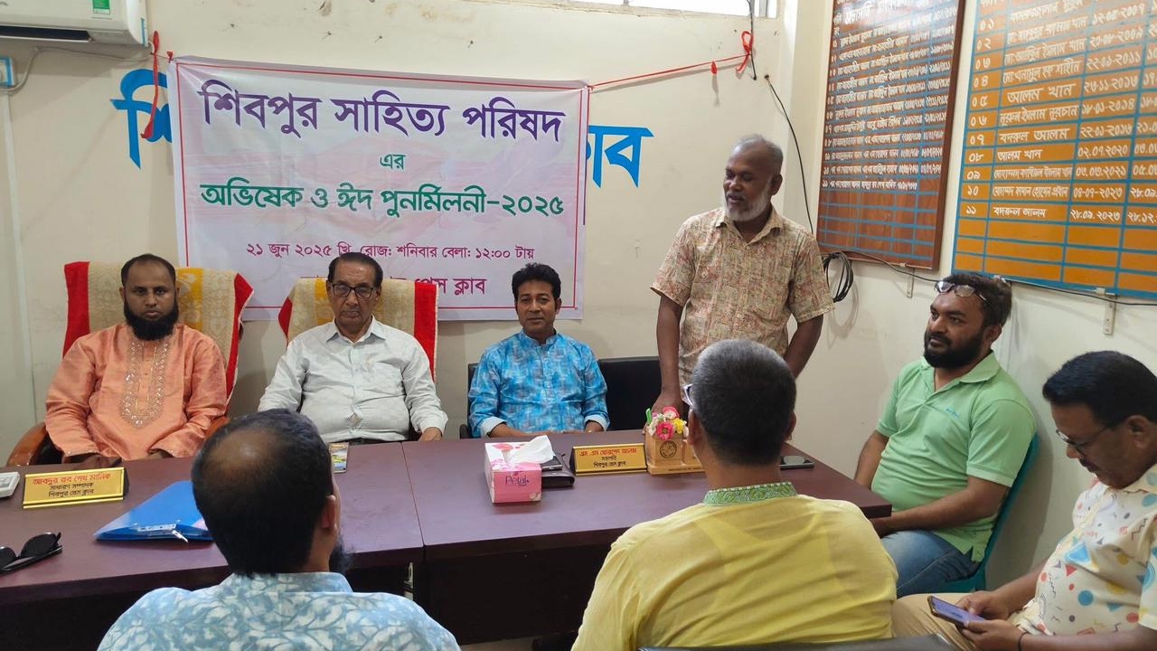 মোমেন খান, নিজস্ব প্রতিবেদক : নরসিংদীর শিবপুর সাহিত্য পরিষদের অভিষেক ও ঈদ পুনর্মিলনী অনুষ্ঠিত হয়েছে। শনিবার (২১ জুন) দুপুরে শিবপুর প্রেস ক্লাব কার্যালয়ে আয়োজিত অনুষ্ঠানে প্রধান অতিথি হিসেবে উপস্থিত ছিলেন নরসিংদী সরকারি কলেজের সাবেক অধ্যক্ষ, প্রবন্ধকার প্রফেসর মোহাম্মদ আলী।
