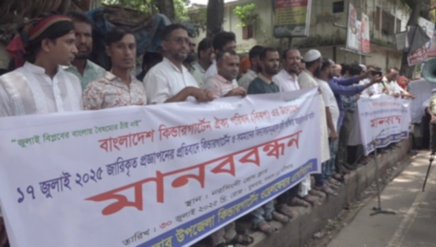 বুধবার (৩০ জুলাই) দুপুরে নরসিংদী প্রেসক্লাবের সামনে বেসরকারি শিক্ষা প্রতিষ্ঠান ঐক্য পরিষদ আয়োজিত এই কর্মসূচিতে নরসিংদীর প্রায় ৬ শতাধিক কিন্ডারগার্টেন স্কুলের শিক্ষক-কর্মচারী, পরিচালক ও অভিভাবকরা অংশ নেয়।