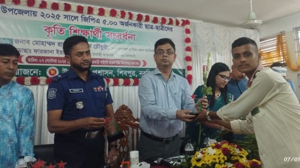 নরসিংদীর শিবপুর উপজেলা প্রশাসন কর্তৃক আয়োজিত ২০২৫ সালে এসএসসি জিপিএ ৫.০০ অর্জনকারী কৃতি শিক্ষার্থী সংবর্ধনায় তালেব হোসেন মেমোরিয়াল একাডেমির ২২ জন শিক্ষার্থী সংবর্ধিত হয়েছেন। ৭ সেপ্টেম্বর রবিবার দুপুরে শিবপুর সরকারি পাইলট মডেল উচ্চ বিদ্যালয়ের হলরুমে এ সংবর্ধিত অনুষ্ঠান অনুষ্ঠিত হয়েছে। সংবর্ধনা অনুষ্ঠানের প্রধান অতিথি নরসিংদী জেলা প্রশাসক ও বিজ্ঞ জেলা ম্যাজিস্ট্রেট মোহাম্মদ রাশেদুল হোসেন চৌধুরী শিক্ষার্থীদের হাতে সম্মাননা ক্রেস্ট ও সার্টিফিকেট তুলে দেন।