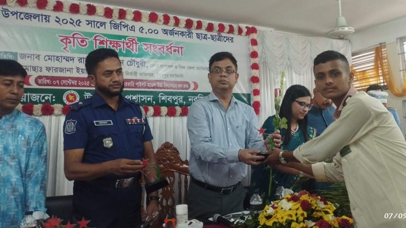 সংবর্ধনা অনুষ্ঠানে সভাপতিত্ব করেন শিবপুর উপজেলা নির্বাহী অফিসার মোছাঃ ফারজানা ইয়াসমিন। শিবপুর উপজেলা মাধ্যমিক শিক্ষা অফিসার মোঃ আলতাফ হোসেনের সঞ্চালনায় অনুষ্ঠানে অন্যান্যদের মধ্যে বক্তব্য রাখেন শিবপুর মডেল থানার অফিসার ইনচার্জ মোঃ আফজাল হোসাইন, শিবপুর সরকারি পাইলট মডেল উচ্চ বিদ্যালয়ের প্রধান শিক্ষক ও শিবপুর উপজেলা দুর্নীতি প্রতিরোধ কমিটির সভাপতি নুর উদ্দিন মোঃ আলমগীর। শিবপুর প্রেসক্লাবের সভাপতি এস এম খোরশেদ আলম, কুমরাদী দারুল উলুম ফাজিল মাদ্রাসার অধ্যক্ষ মোঃ আসাদুল্লাহ, কৃতি শিক্ষার্থী মাহতির বিন মাহাবুব স্পর্শ ও মাহবুবে নুসরাত প্রমুখ।