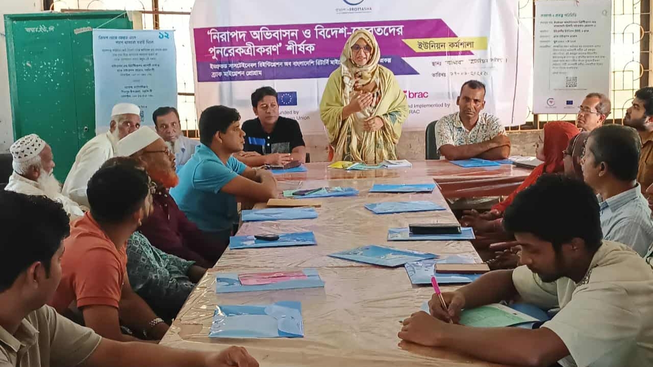 আলমগীর পাঠান, নিজস্ব প্রতিবেদক : ইউরোপীয় ইউনিয়ন ও সর্ববৃহৎ বেসরকারি উন্নয়ন সংস্থা ব্র্যাক-এর যৌথ অর্থায়নে ব্র্যাক মাইগ্রেশন প্রোগ্রাম এর বাস্তবায়নে “ইম্প্রুভড সাসটেইনেবল রিইন্টিগ্রেশন অব বাংলাদেশী রির্টানী মাইগ্রেন্টস (প্রত্যাশা ২) প্রকল্পের আওতায় “নিরাপদ অভিবাসন ও বিদেশ-ফেরতদের পুনরেকত্রীকরন" শীর্ষক ইউনিয়ন কর্মশালা অনুষ্ঠিত হয়েছে।