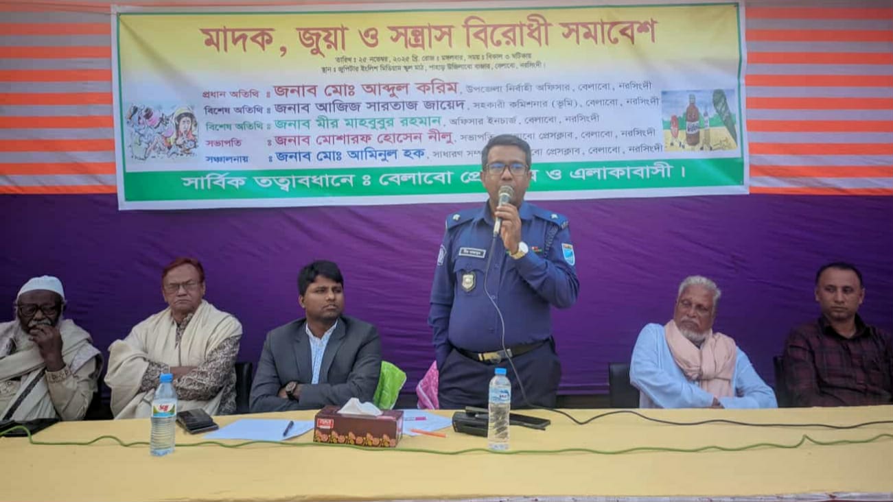 আলমগীর পাঠান, নিজস্ব প্রতিবেদক : নরসিংদীর বেলাবতে মাদক, জুয়া ও সন্ত্রাস বিরোধী সমাবেশ অনুষ্ঠিত হয়েছে। (২৫ নভেম্বর) মঙ্গলবার বিকালে উপজেলার আমলাব ইউনিয়নের পাহাড় উজিলাবো বাজার জুপিটার ইংলিশ মিডিয়াম এন্ড মডার্ণ স্কুল মাঠে বেলাব প্রেসক্লাবের আয়োজনে এ সমাবেশ অনুষ্ঠিত হয়।