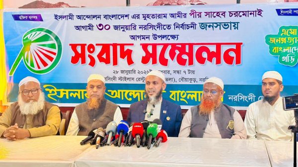 এ উপলক্ষে আজ বুধবার (২৮ জানুয়ারি) রাত ৮ টায় নরসিংদী শহরের বৌয়াকুড় এলাকার স্টাইলাস রেস্টুরেন্টে চতুর্থ তলায় সংবাদ সম্মেলনের আয়োজন করে ইসলামী আন্দোলন বাংলাদেশ নরসিংদী জেলা শাখা।