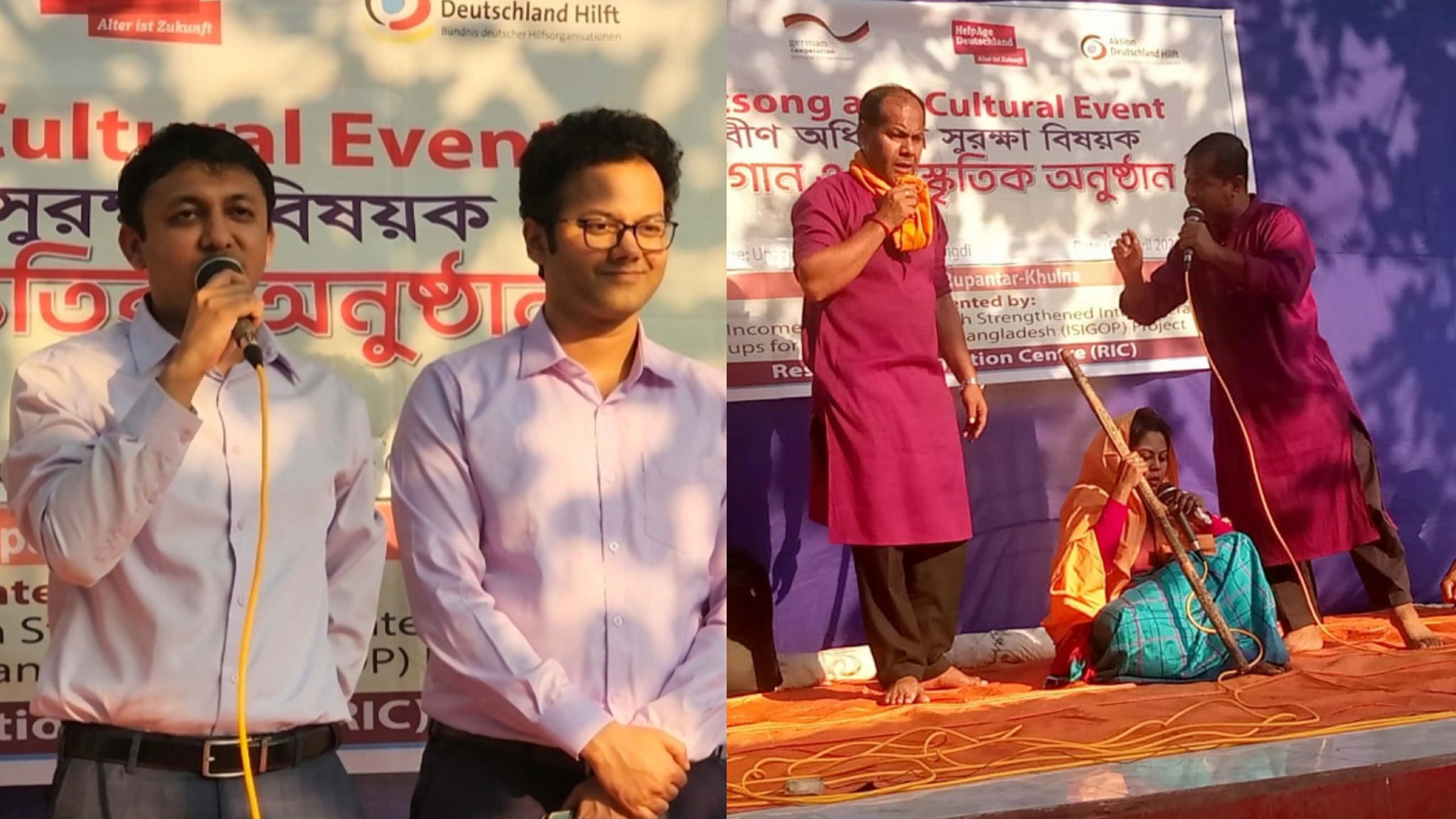 সাংস্কৃতিক অনুষ্ঠানে বাদ্যযন্ত্রের তালের সাথে লোকজ সুরের মূর্ছনায় গানের প্রতিটি চরণে ফুটে উঠছে প্রবীণদের অধিকার, মর্যাদা এবং তাদের প্রতি সমাজের দায়িত্বের কথা।