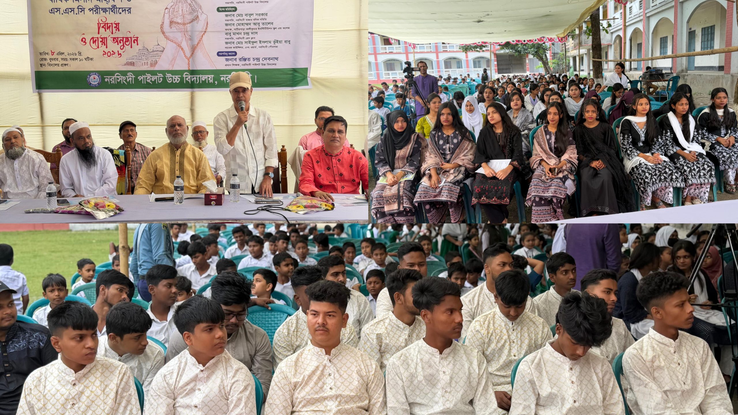 নরসিংদী প্রতিবেদক: আসন্ন এসএসসি পরীক্ষাকে সামনে রেখে নরসিংদী পাইলট উচ্চ বিদ্যালয়ে ২০২৬ সালের পরীক্ষার্থীদের সম্মানে এক আন্তরিক বিদায় ও দোয়া মাহফিল অনুষ্ঠিত হয়েছে। অনুষ্ঠানে বিদ্যালয়ের শিক্ষক-শিক্ষার্থী, অভিভাবক, সামাজিক ও রাজনৈতিক ব্যাক্তিবর্গ এনং পরিচালনা কমিটির সদস্যরা উপস্থিত ছিলেন।