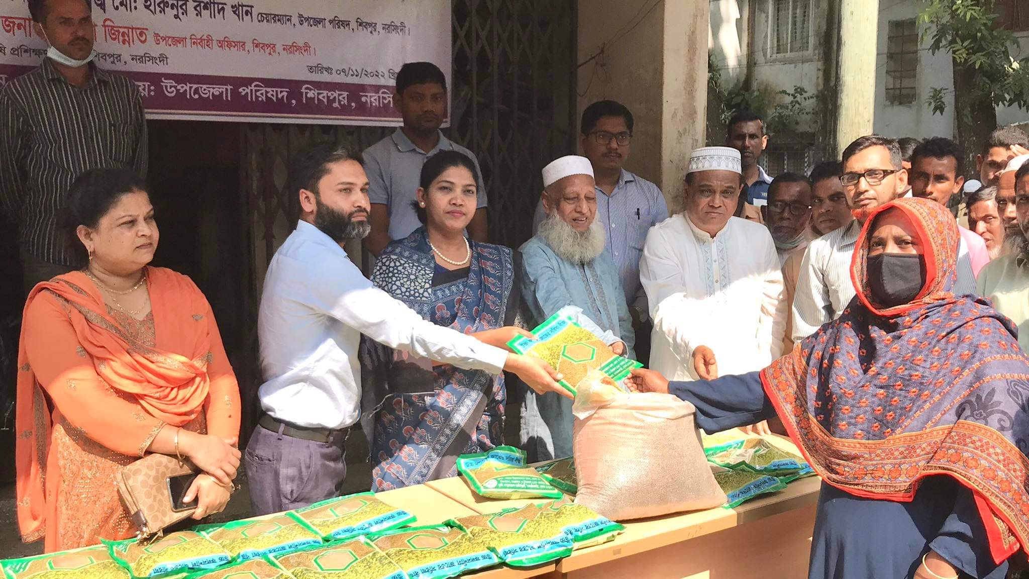 বীজ বিতরণ অনুষ্ঠানে উপজেলা নির্বাহী কর্মকর্তা জিনিয়া জিন্নাতের সভাপতিত্বে প্রধান অতিথি হিসেবে উপস্থিত ছিলেন শিবপুর উপজেলা পরিষদের চেয়ারম্যান হারুনুর রশিদ খান।