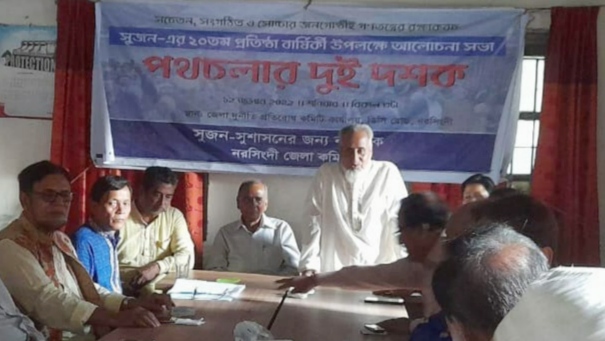 জেলা সম্পাদক হলধর দাসের সঞ্চালনায় অনুষ্ঠিত আলোচনা সভায় বক্তব্য রাখেন সুজনের প্রধান উপদেষ্টা নরসিংদী সরকারী কলেজের সাবেক অধ্যক্ষ ও জেলা দুর্নীতি প্রতিরোধ কমিটির সাবেক সভাপতি প্রফেসর সূর্যকান্ত দাস, নরসিংদী সরকারি কলেজের সাবেক অধ্যক্ষ ও জেলা সুজন এর উপদেষ্ঠাতা প্রফেসর গোলাম মোস্তাফা মিয়া,
