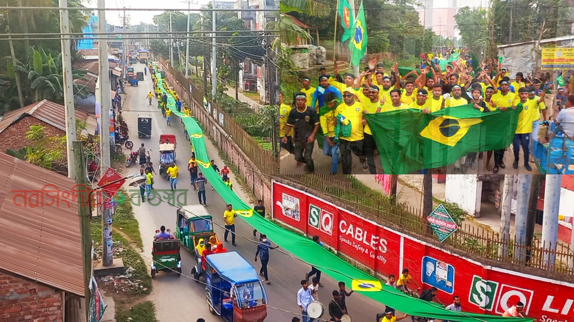 আজ রবিবার বিকেলে ঘোড়াশাল পৌরসভার মেয়র ব্রাজিল সমর্থক আল মুজাহিদ হোসেন তুষারের নেতৃত্বে ব্রাজিল ভক্তরা পলাশ বাজার থেকে পলাশ বাসস্ট্যান্ড পর্যন্ত দুই