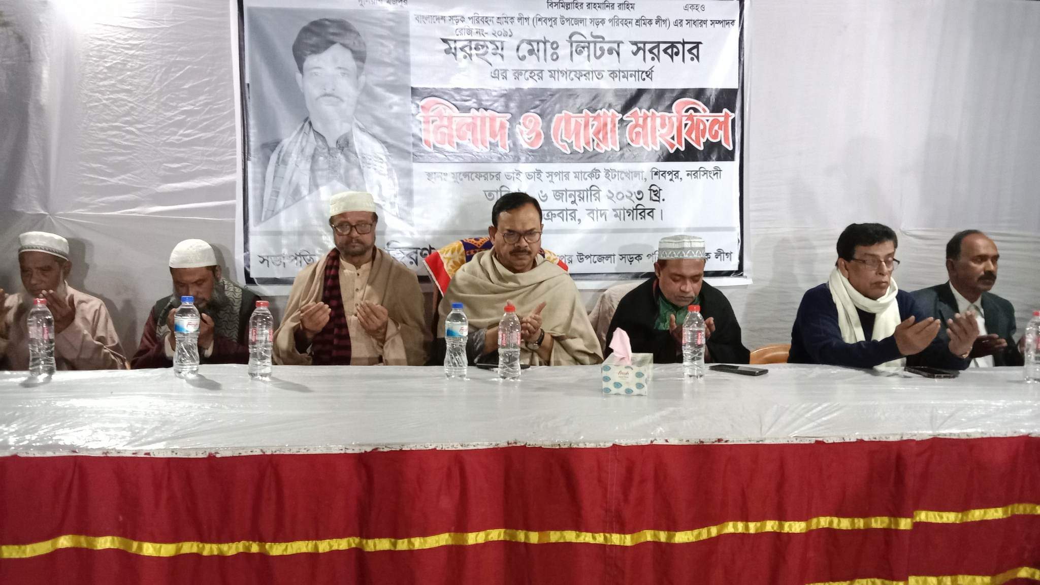 শেখ মানিক : বাংলাদেশ সড়ক পরিবহন শ্রমিক লীগের নরসিংদীর শিবপুর উপজেলা শাখার সাধারণ সম্পাদ সদ্য প্রয়াত মরহুম মোঃ লিটন সরকারের রুহের মাগফেরাত কামনায় মিলাদ ও দোয়া মাহফিল অনুষ্ঠিত হয়েছে।