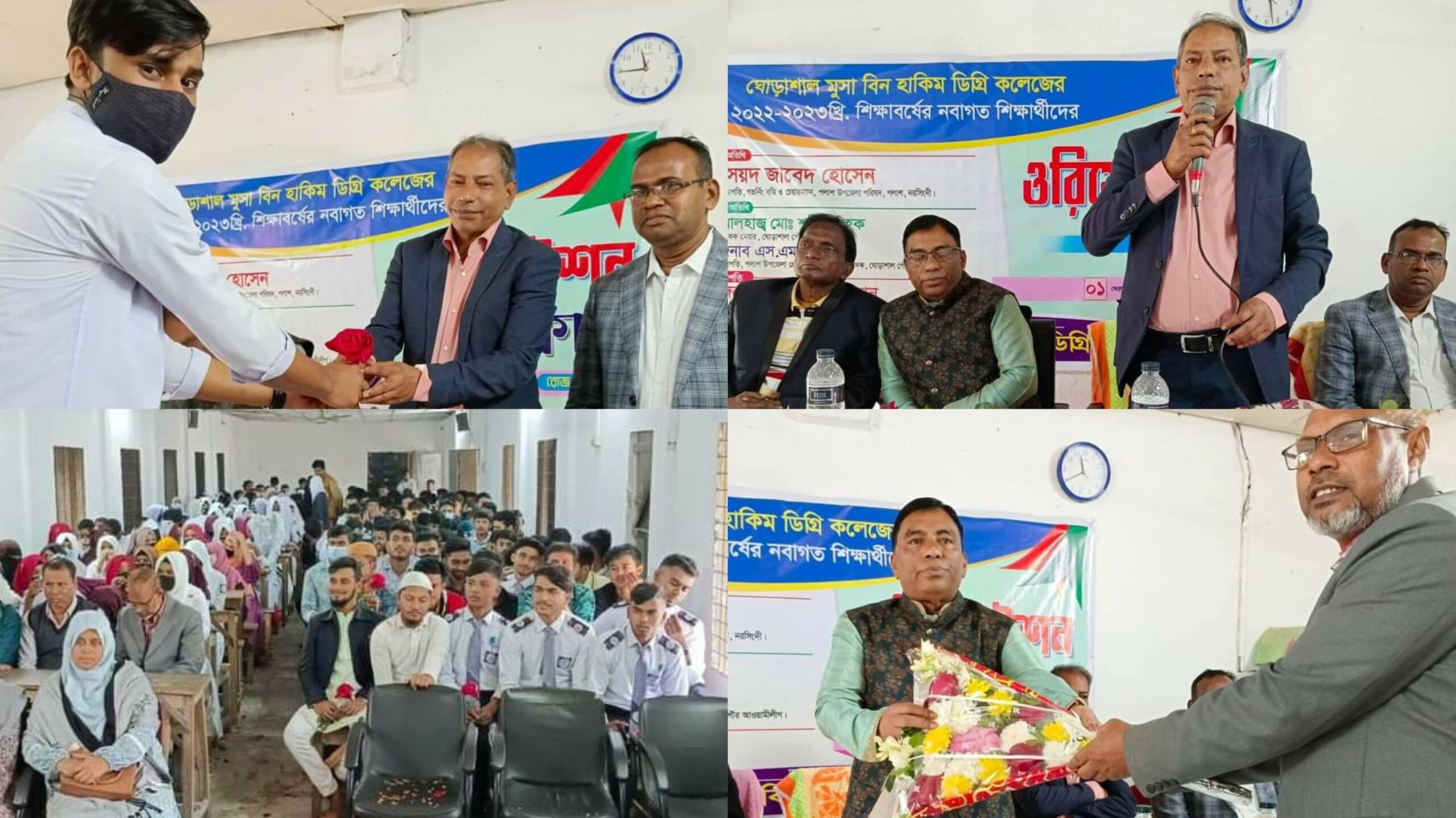 সাব্বির হোসেন, নিজস্ব প্রতিবেদক : নরসিংদীর পলাশে ঘোড়াশাল মুসাবিন হাকিম ডিগ্রি কলেজের ২০২২-২০২৩ শিক্ষাবর্ষের নবাগত শিক্ষার্থীদের ওরিয়েন্টেশন ক্লাস অনুষ্ঠিত হয়েছে। আজ বুধবার বেলা ১১টায় শিক্ষা প্রতিষ্ঠানটির একটি কক্ষে এই ওরিয়েন্টেশন ক্লাস অনুষ্ঠিত হয়।
