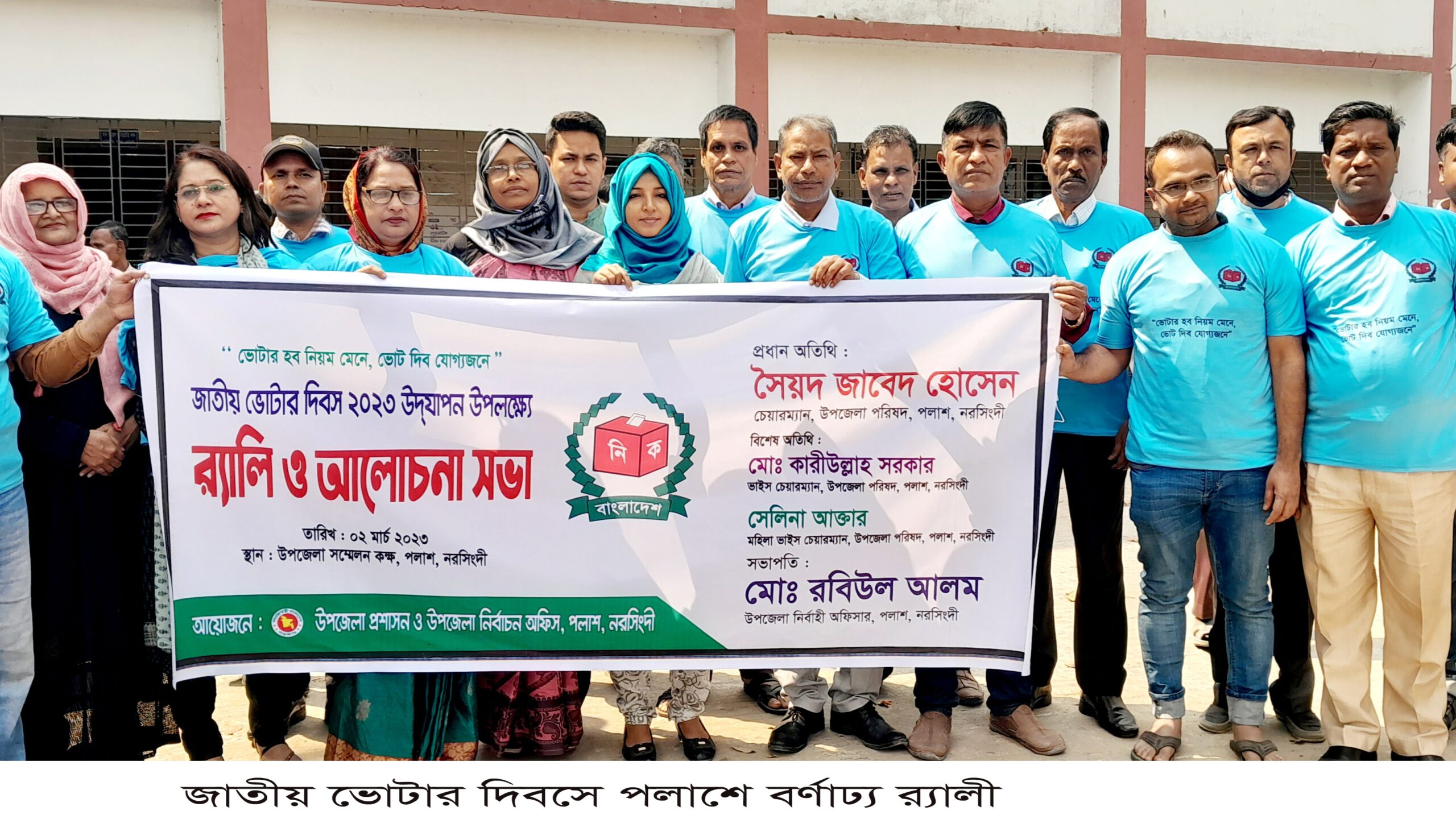 মোঃ আশাদউল্লাহ মনা :"ভোটার হব নিয়ম মেনে, ভোট দিব যোগ্যজনে" প্রতিপাদ্য বিষয়কে সামনে রেখে নরসিংদীর পলাশে ৫ম জাতীয় ভোটার দিবস-২০২৩ পালিত হয়েছে।