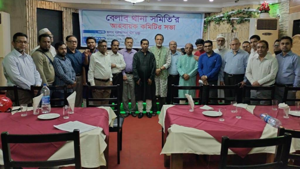 বেলাব থানা সমিতির আহ্বায়ক মোঃ নুরুজ্জামান খান বাচ্চুর সভাপতিত্বে ও সদস্য সচিব প্রকৌশলী মোঃ খায়রুল বাকেরের পরিচালনায় উপস্থিত ছিলেন বেলাব থানা সমিতির সাবেক সাধারন সম্পাদক মোঃ শাহজাহান, সাবেক অতিরিক্ত সচিব মোঃ আবু বকর, ড. শাহজাহান।
