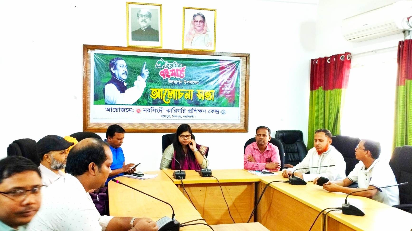 নরসিংদী কারিগরি প্রশিক্ষণ কেন্দ্রের অধ্যক্ষ প্রকৌশলী নাবিলা নুঝাত এর সভাপতিত্বে অত্র প্রতিষ্ঠানের সকল কর্মকর্তা কর্মচারী এই সভায় অংশগ্রহণ করেন। আলোচনা সভায় জাতির পিতা বঙ্গবন্ধুর ভাষণ ও তার রাজনৈতিক জীবন নিয়ে তাৎপর্যপূর্ণ আলোচনা হয়।
