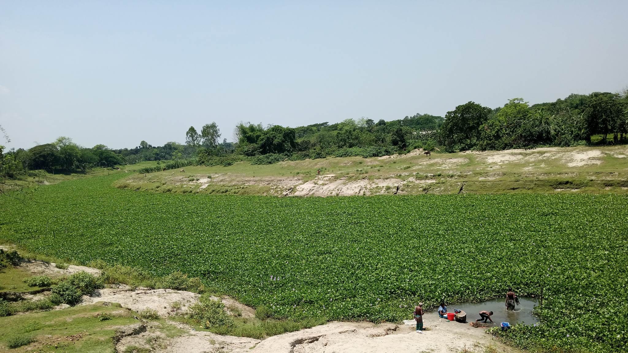 নদের পাড়ে বসবাসকারী মনোহরদীর রামপুর গ্রামের জেলে সম্প্রদায়ের লোকজন জানান, গত নভেম্বরের দিকে আড়িয়াল খাঁ নদে ড্রেনেরঘাট ব্রীজের নীচে এপার ওপার জুড়ে একটি বাঁশের সাঁকো দেয়া হয়। সেই থেকে নদটির বৈরাগীর চর এলাকা থেকে শুরু করে ড্রেনেরঘাট ব্রীজ পর্যন্ত প্রায় ৫ কিলোমিটার এলাকা জুড়ে ঘন কচুরীপানা আটকে থাকে।