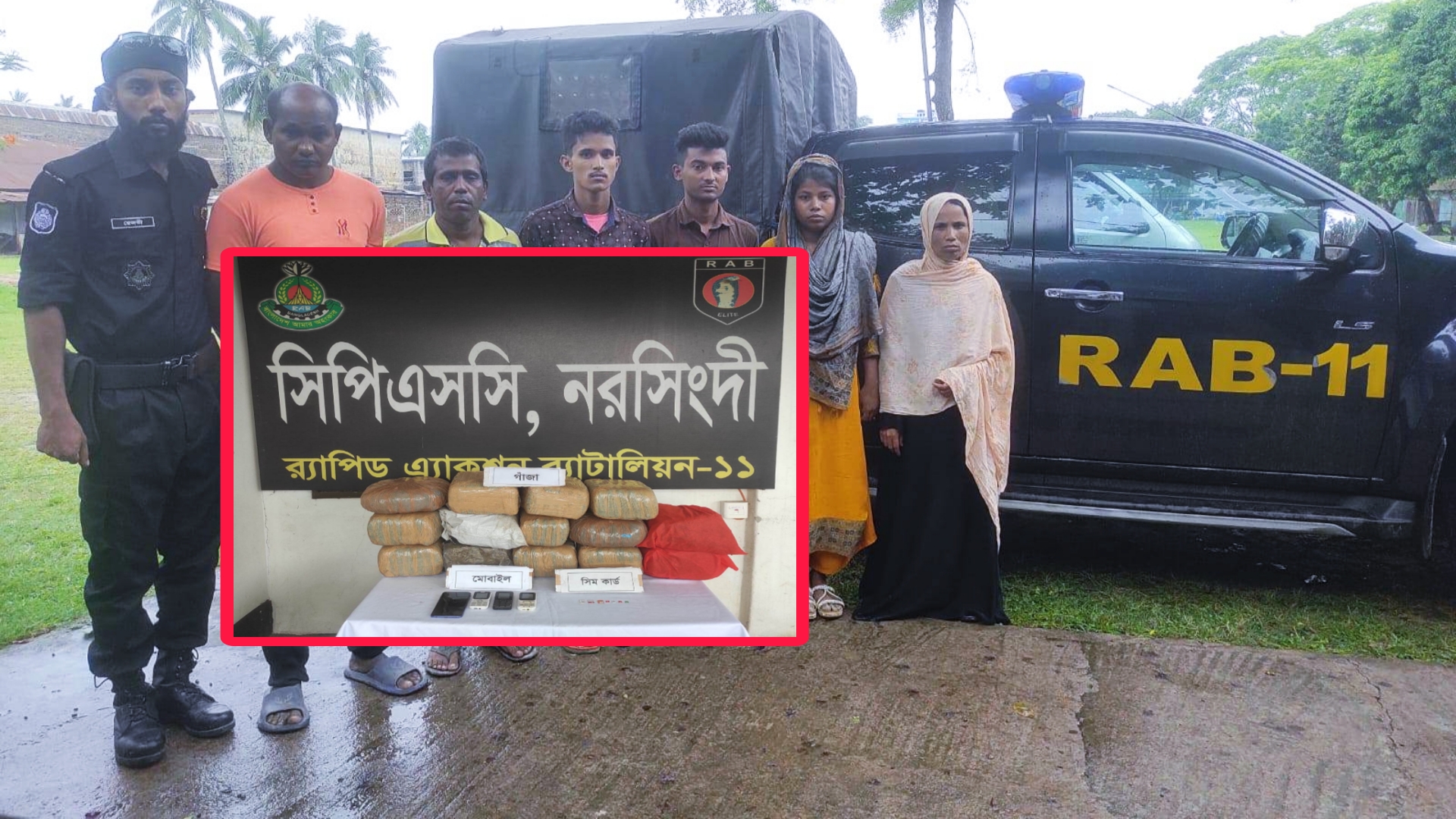 র্যাব-১১ এর ক্যাম্প কমান্ডার মোঃ খলিলুর রহমান জানান, গোপন তথ্যের ভিত্তিতে মাধবদীর খরমুদ্দি এলাকার ফায়ার সার্ভিস স্টেশন মোড়ের পাকা সড়কের উপর অভিযান পরিচালনা করা হয়। অভিযানে মাদক পরিবহন ও ক্রয়-বিক্রয়ের সময় সিএনজিচালিত অটোরিকশার চালকসহ ৬ জনকে আটক করা হয়। এসময় তাদের দখল থেকে ৭ লাখ ৫০ হাজার টাকা মূল্যের সাড়ে ৩৭ কেজি গাঁজা উদ্ধার ও গাঁজা পরিবহনে ব্যবহৃত একটি সিএনজিচালিত অটোরিকশা ও ৪টি মোবাইল ফোন জব্দ করা হয়।
