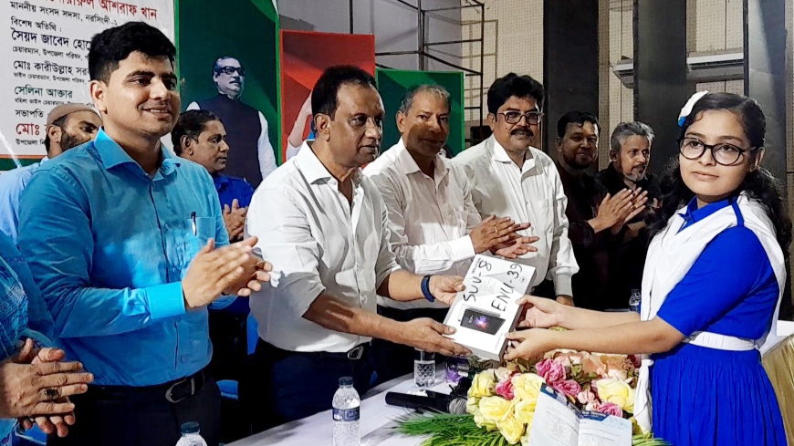 মোঃ আশাদউল্লাহ মনা : নরসিংদীর পলাশ উপজেলার মাধ্যমিক বিদ্যালয় ও মাধ্যমিক সমমানের সরকারী মাদ্রাসার ৩০০ মেধাবী শিক্ষার্থীদের মাঝে প্রধানমন্ত্রী শেখ হাসিনার উপহার শিক্ষা সহায়ক উপকরন ট্যাব বিতরণ করা হয়েছে।