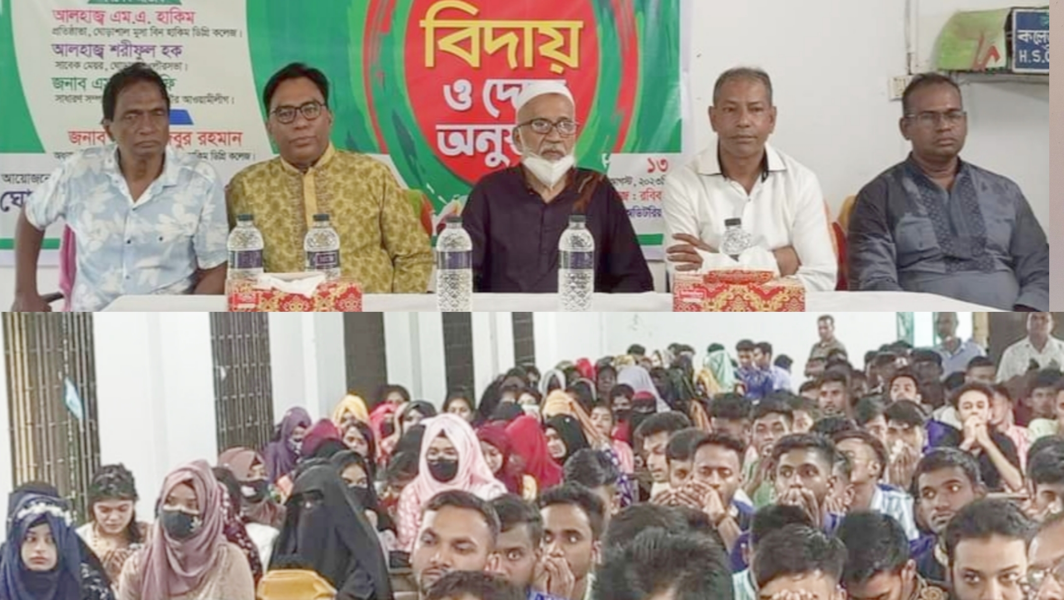 নিজস্ব প্রতিবেদক : নরসিংদীর পলাশের ঘোড়াশাল মুসা বিন হাকিম ডিগ্রি কলেজে ২০২১-২২ শিক্ষাবর্ষের এইচএসসি পরীক্ষার্থীদের বিদায় ও দোয়া মাহফিল অনুষ্ঠিত হয়েছে।