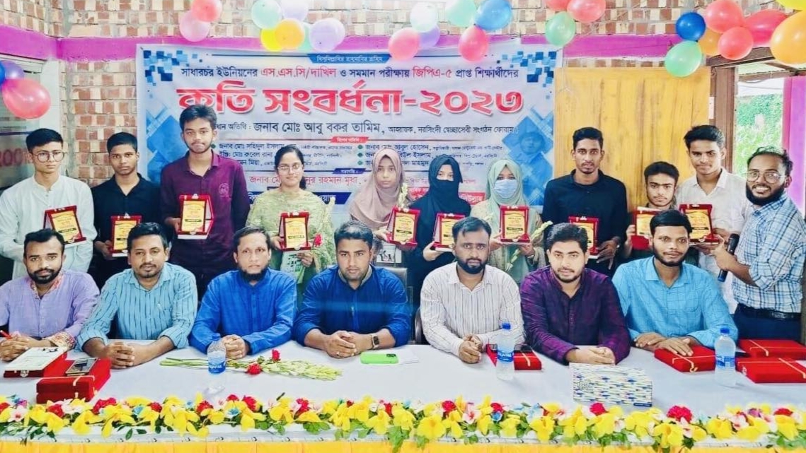 মোমেন খান : নরসিংদীর শিবপুরের বিভিন্ন শিক্ষা প্রতিষ্ঠান থেকে এসএসসি ও সমমনা পরীক্ষায় সাধারচর ইউনিয়নের ১৯ জন জিপিএ-৫ প্রাপ্ত কৃতি শিক্ষার্থীদের সংবর্ধনা প্রদান করা হয়েছে।