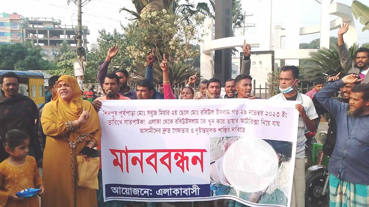 মানববন্ধনটি শিবপুর কলেজ গেইট গোলচত্বর থেকে শুরু করে সদর রোড দিয়ে বাসস্ট্যান্ড হয়ে একই স্থানে এসে শেষ হয়। নিহত মোঃ রবিউল ইসলাম শিবপুর পূর্বপাড়ার মোঃ সবুজ মিয়ার ছেলে।