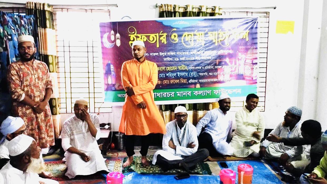 মোমেন খান, নিজস্ব প্রতিবেদক : নরসিংদীর শিবপুরে সাধারচর মানব কল্যাণ ফাউন্ডেশনের উদ্যোগে ইফতার ও দোয়া মাহফিল অনুষ্ঠিত হয়েছে। শুক্রবার বিকেলে দক্ষিণ সাধারচর দারুল উলুম হাজী বাড়ী মাদ্রাসা ও এতিমখানায় এতিম ও মাদ্রাসার ছাত্রদের নিয়ে ইফতার ও দোয়া মাহফিলের আয়োজন করে সাধারচর ভিত্তিক সামাজিক সংগঠন সাধারচর মানব কল্যাণ ফাউন্ডেশন।