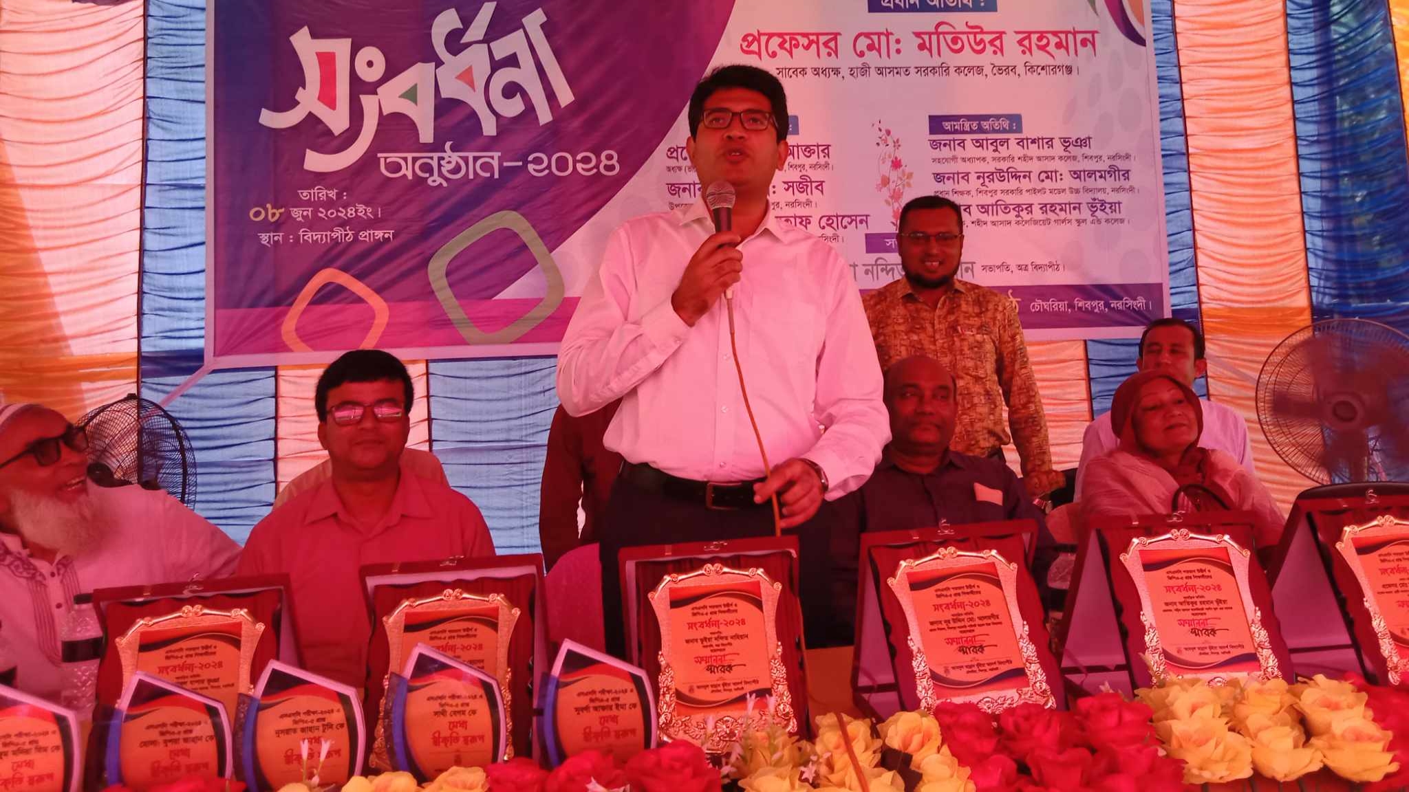 শনিবার (৮জুন) সকাল ১১ টায় বিদ্যালয় মাঠে এই সংবর্ধনা অনুষ্ঠানের আয়োজন করা হয়। বিদ্যালয়ের ভারপ্রাপ্ত প্রধান শিক্ষক কাইয়ুম ভূইয়ার সভাপতিত্বে এ সংবর্ধনা অনুষ্ঠান অনুষ্ঠিত হয়। এতে প্রধান অতিথির বক্তব্য রাখেন ভৈরব হাজী আসমত সরকারি কলেজের সাবেক অধ্যক্ষ প্রফেসর মো: মতিউর রহমান।