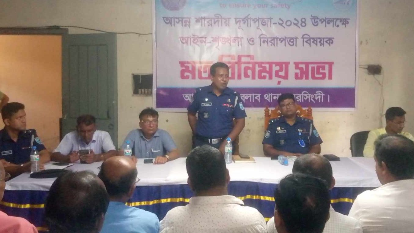 বেলাব থানা অফিসার ইনচার্জ মীর মাহবুবর রহমানের বলেন, আসন্ন শারদীয় দুর্গাপূজা উদযাপন উপলক্ষে নিরাপত্তার জন্য করণীয় ও বর্জনীয় নির্দেশনা উল্লেখ করে বলেন, বেলাব উপজেলার ৮ টি ইউনিয়নের ২১ টি পূজামন্ডপ হতে যাচ্ছে। তাই পূজামন্ডপে আসা পূজারীদের নির্বিঘ্নে পূজা উদযাপনের লক্ষে বেলাব থানা পুলিশ সর্বদা সজাগ রয়েছে।