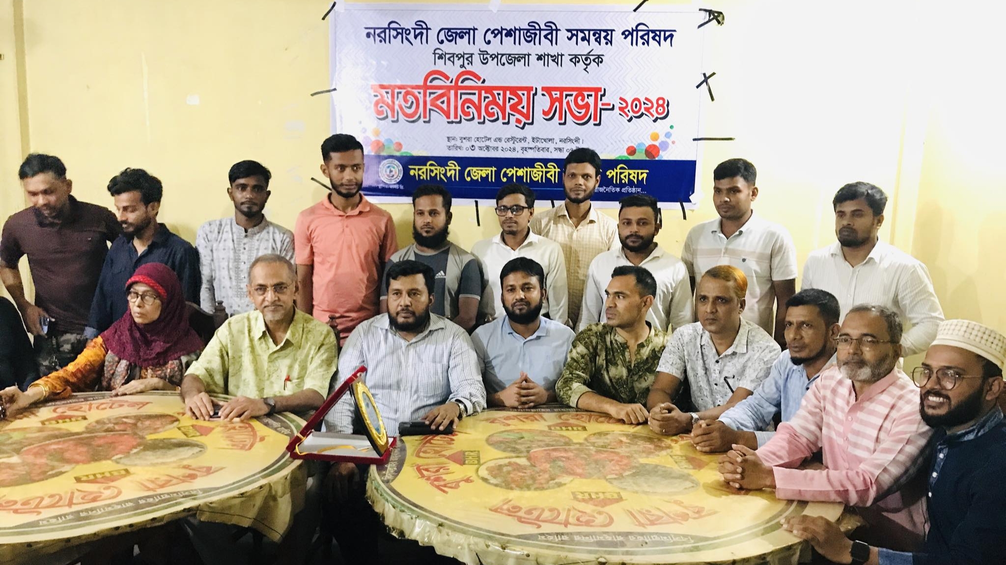 শিবপুর উপজেলা শাখার সমন্বয়ক মোমেন খান এর সঞ্চালনায় বক্তব্য রাখেন, নরসিংদী জেলা পেশাজীবী সমন্বয় পরিষদের প্রতিষ্ঠাতা ও বাংলাদেশ বিশ্ববিদ্যালয় মঞ্জুরী কমিশনের বাজেট পরীক্ষক রাসেল মিয়া, প্রতিষ্ঠাতা সদস্য ও সেনাসদস্য শফিকুল ইসলাম কিশোর, মাদকদ্রব্য নিয়ন্ত্রণ অধিদপ্তর হবিগঞ্জের সহকারী পরিচালক মোহাম্মদ সাজেদুল হাসান, শিবপুর উপজেলা সহ-সমন্বয়ক নরসিংদী টিটিসির জব প্লেসমেন্ট অফিসার রুবেল রানা, প্রাথমিক বিদ্যালয় সহকারী শিক্ষক সমিতি নরসিংদী জেলা শাখার সহ-সাংগঠনিক সম্পাদক শওকত আলী প্রমুখ।মতবিনিময় শেষে নরসিংদী জেলা পেশাজীবী সমন্বয় পরিষদের পক্ষ থেকে উপদেষ্টা আকরামুল হাসান মিন্টু কে সম্মাননা ক্রেস্ট প্রদান করা হয়।