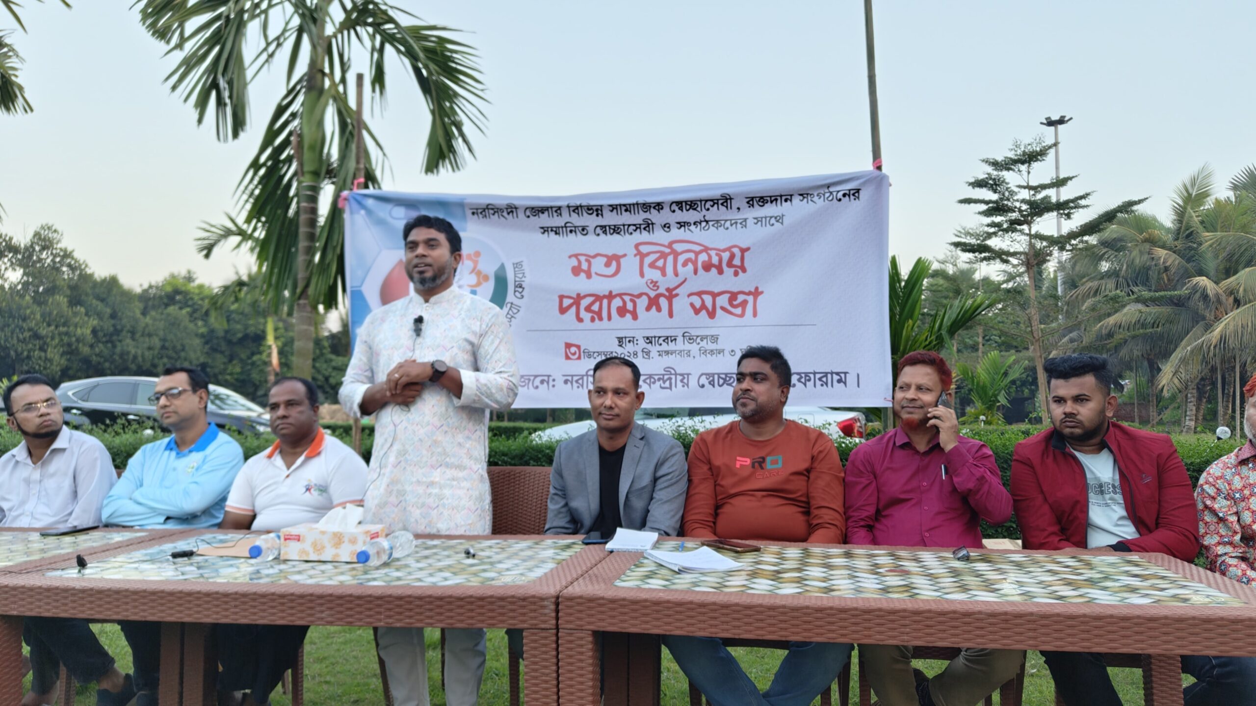 মতবিনিময় সভায় নরসিংদী কেন্দ্রীয় স্বেচ্ছাসেবী ফোরামের আহবায়ক মাহবুবুর রহমান মনির বলেন, নরসিংদীর স্বেচ্ছাসেবীরা সবার আগে আর্ত মানবতার সেবায় এগিয়ে আসে। জেলার যেকোন স্থানে রক্তের প্রয়োজন হলে স্বেচ্ছাসেবীরা নিঃস্বার্থ ভাবে স্বেচ্ছাসেবীরা রক্ত দান করে থাকে।