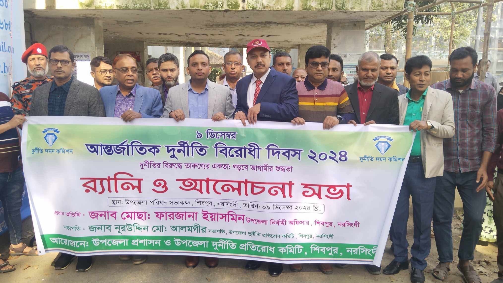 মোমেন খান, নিজস্ব প্রতিবেদক : নরসিংদীর শিবপুর উপজেলায় উপজেলা প্রশাসন ও উপজেলা দুর্নীতি প্রতিরোধ কমিটির আয়োজনে আন্তর্জাতিক দুর্নীতি বিরোধী দিবস উদযাপন করা হয়েছে। আজ সোমবার ( ৯ ডিসেম্বর) সকাল সাড়ে দশটায় এ দিবস উদযাপন করা হয়। দিবসের শুরুতে উপজেলা পরিষদ মাঠে জাতীয় সংগীতের মাধ্যমে জাতীয় পতাকা ও দুদক পতাকা উত্তোলন করা হয়।