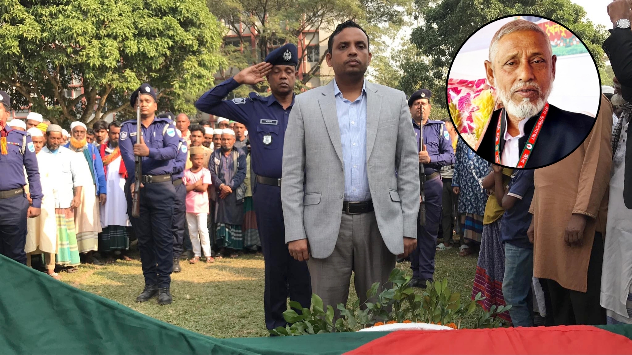 শিবপুর মডেল থানার পুলিশের একটি চৌকস দল তাকে গার্ড অব অনার দেয় এবং বিউগলে করুন সুর বাজানো হয়।এক মিনিট নীরবতা পালন শেষে একই স্থানে জানাজা নামাজ শেষে পারিবারিক কবরস্থানে তাকে দাফন করা হয়। জানাজা নামাজে বাঘাব ইউনিয়ন পরিষদের সাবেক চেয়ারম্যান ভিপি তরুণ মৃধাসহ মুক্তিযোদ্ধাবৃন্দ উপস্থিত ছিলেন।
