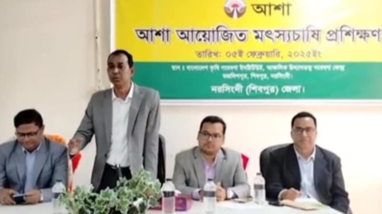 নিজস্ব প্রতিবেদক : বেসরকারি উন্নয়ন সংস্থা আশা নরসিংদী (শিবপুর) জেলার আয়োজনে মৎস্য চাষীদের দিনব্যাপী প্রশিক্ষণ কর্মশালা অনুষ্ঠিত হয়েছে। বুধবার(৫ ফেব্রুয়ারী) সকালে শিবপুর উপজেলার মজলিশপুরে বাংলাদেশ কৃষি গবেষণা ইন্সটিটিউট আঞ্চলিক উদ্যানতত্ত্ব গবেষনা কেন্দ্রের হলরুমে কর্মশালাটি শুরু হয়ে চলে দিনব্যাপী। চাষীদের প্রশিক্ষন প্রদান করেন নরসিংদী জেলা মৎস্য কর্মকর্তা মোঃ ফয়সাল আযম।