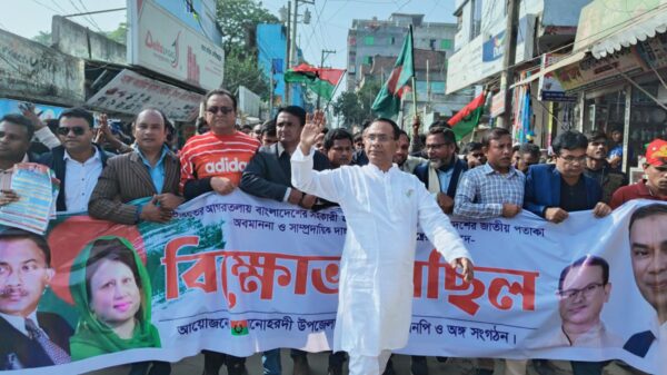 নিজস্ব প্রতিবেদক : নরসিংদীর মনোহরদীতে সন্ত্রাসী সংগঠন আওয়ামীলীগ কে নিষিদ্ধ ও গাজীপুরে সন্ত্রাসী কর্তৃক বীর কাশেমকে হত্যার প্রতিবাদে বিক্ষোভ সমাবেশ, মিছিল ও দোয়া মাহফিল অনুষ্ঠিত হয়েছে। বৃহস্পতিবার সন্ধ্যায় মনোহরদী উপজেলা